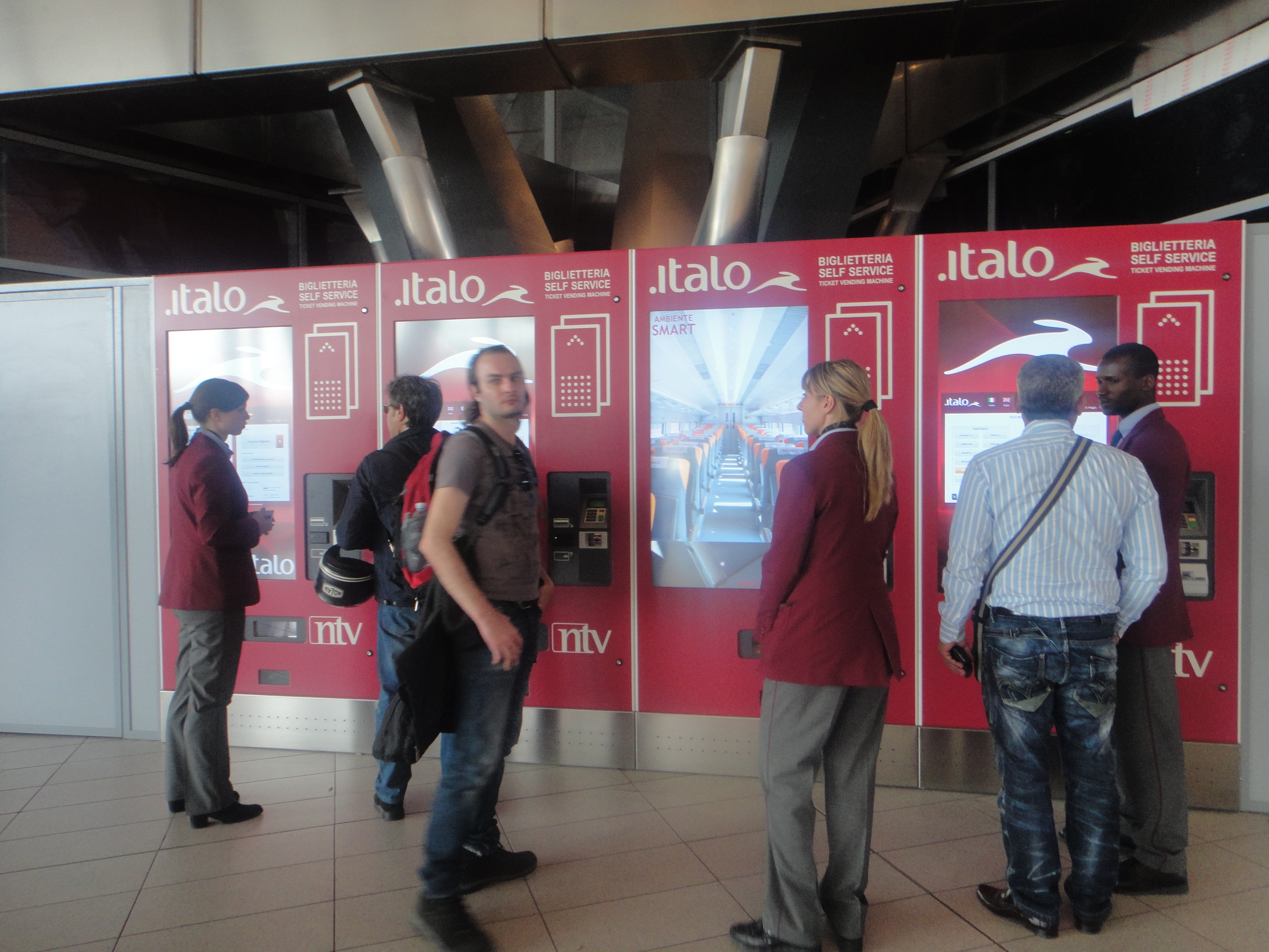 Em matéria de serviços eles possuem lojas (chamadas de Casa Italo) que fazem atendimento ao público e também quiosques self-services em todas estações onde atuam. Ok, a TrenItalia também tem porém em matéria de conforto nem se compara. Pelo que tenho ouvido em matéria de serviço também não. Só quem já passou pela tortura de comprar passagens em Termini sabe com o pessoal por ali é disponível..rs…
