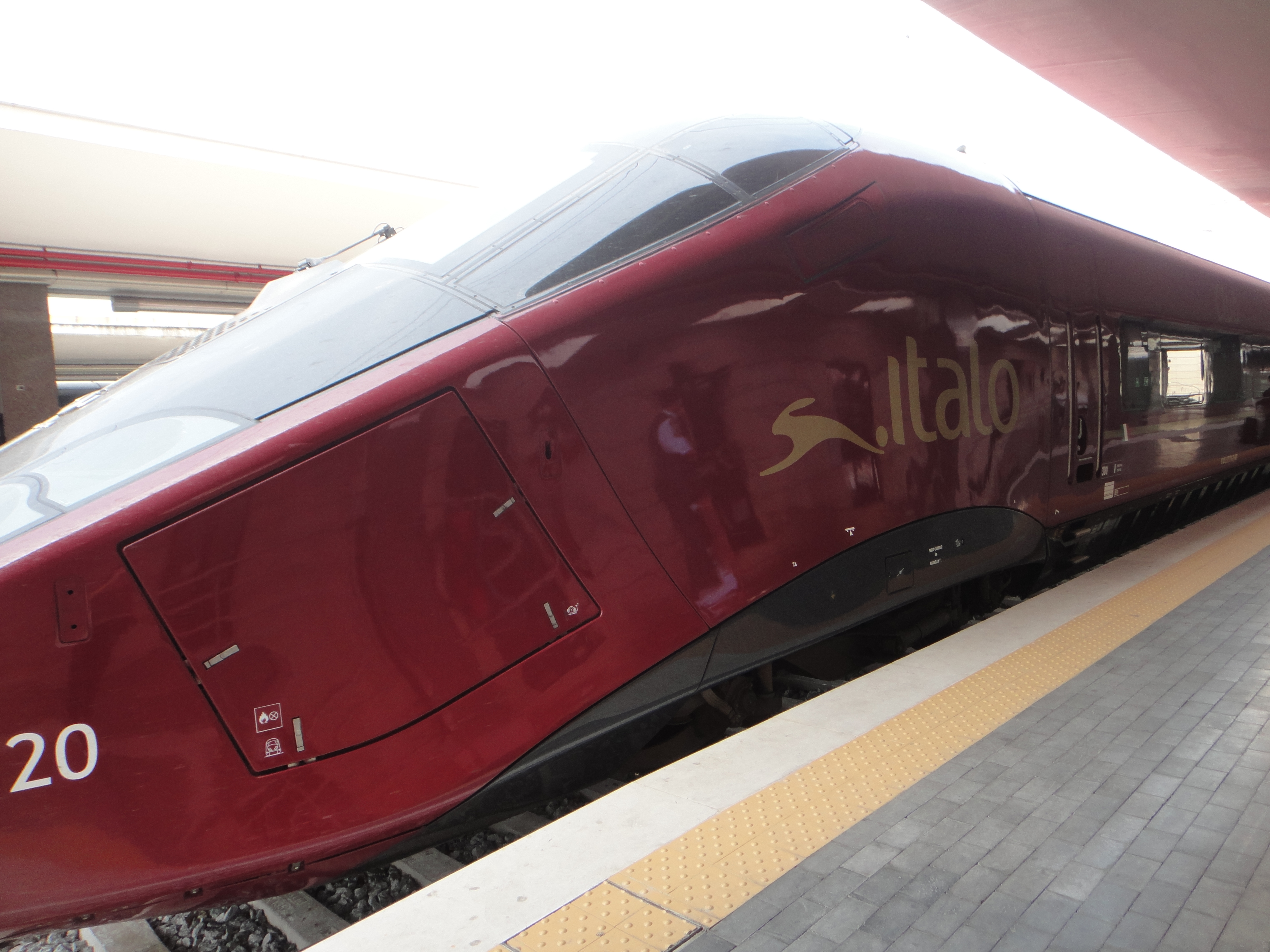 A Italo chega com trens novos em folha, considerados os mais rápidos da Europa, que podem alcançar uma velocidade de até 360 km/h. Porém, pelo que observei, viajam na mesma velocidade da TrenItalia pois o tempo de deslocamento entre os seus destinos é praticamente igual ao da concorrente. Varia um pouco dependendo do local de saída de Roma. A diferença está nos serviços e nos preços, são três classes Smart, Prime e Club e três níveis de tarifa Base, Economy e Low-cost (só para a classe Smart). Hoje mesmo vi no site da TrenItalia que eles reformulam a sua base tarifária, viva a concorrência!